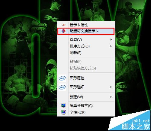 2、安装了ATI显卡驱动程序之后,在桌面右击鼠标,然后选择“配置可交换显示卡”。