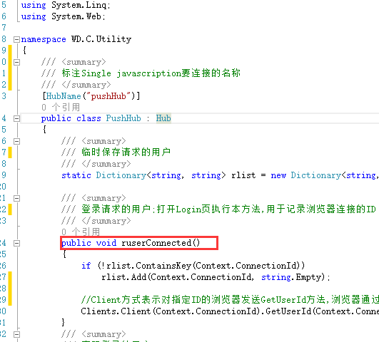 表示调用"pushHub"运行后执行 runserConnected方法,在临时表中增加当前浏览器的ConnectionID