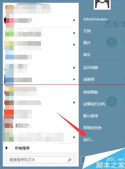 1、打开电脑左下角“开始”菜单,找到【运行】选项,点击打开