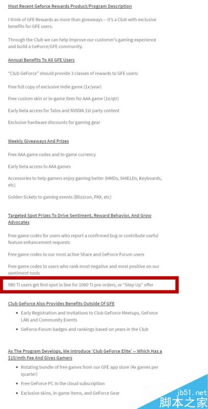 这份寻求GeForce,Gamer Loyalty&Advocacy的高级市场经理的领英文案中,NVIDIA反常地着墨了很多,其中透露,980 Ti的用户(参与GFE)此次将会率先预购到GTX 1080 Ti。