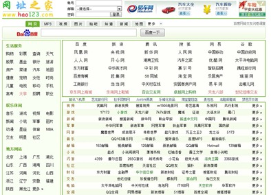 通常一个网站的首页承担了这一作用。下图截自“hao123”,因为他们全站几乎只有一个导航的作用,很典型。