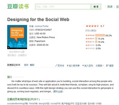 这是用户浏览我们网站的目的地。我之前更喜欢管它叫“内容页”,但是通常用户都需要在这个停留相对较长的时间,在我看来,这个页面“消费”了我们的时间。web2.0的豆瓣也不例外,我们找到了一半理想的书籍,会细细阅读相关的介绍.