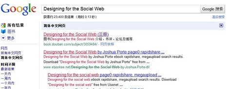 自从有了Google等伟大的搜索技术,我们浏览网页的方式有了极大的改变,我可能直接就会找到我感兴趣的内容。比如下图,第一条搜索结果就是刚刚豆瓣的那个网页,这样点击一次就可以到达。所以,每个消费页都可能是着陆页。