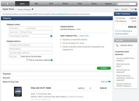 来自apple的这个例子。购物之后交费页面仅提供主导航做为“紧急出口”,让用户可以终止这个购物流程。同时提供了帮助页,对这个流程进行支持。再就是少量的付款需要参考的信息。