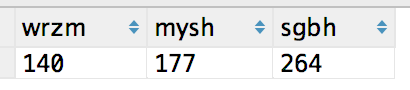 我们发现这个结果已经有点像样了,如果能将表中 wrzm ,mysh ,sgbh 的数据三行变成一行,那就好了。于是我们很自然可以想到用 SUM (当然一开始我没想到,经过朋友提醒),于是改写上面的 SQL :