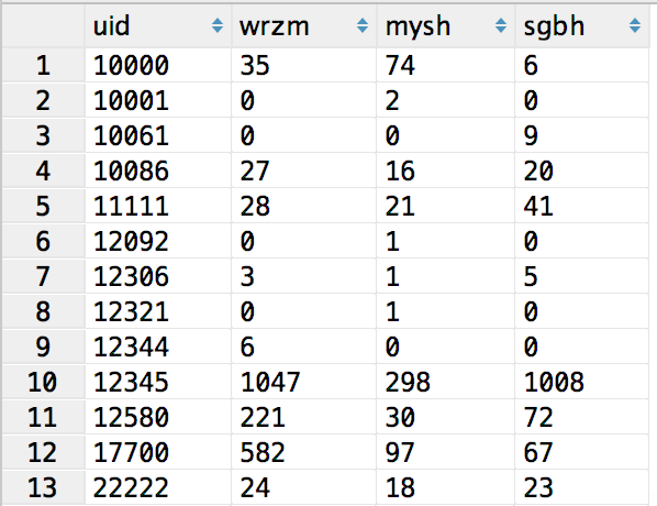 按照上面查询出来的结果为: