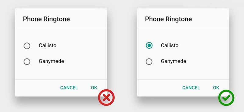 当我们设计单选框时,遵循设计标准很重要,因为这会培养用户预知一个控件会起到什么作用、并且如何操作的能力。相反,违反设计标准会影响用户界面的可信度--好比如果没有警示信息,任何可怕的事都会发生。