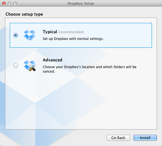 △ 如果系统强推某个选项,可以在选项旁增加“推荐”的标签 范例:DROPBOX