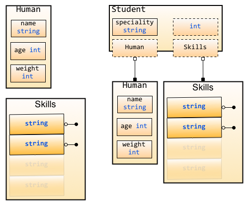 Human // 匿名字段,那么默认Student就包含了Human的所有字段