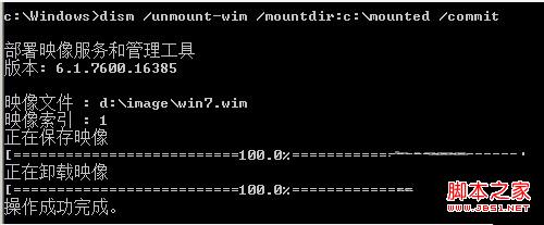6.保存对镜像的修改,命令格式如下:dism /unmount-wim /mountdir:c:\