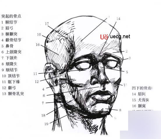 2、头部的造型骨点所谓%26ldquo;造型骨点,是指某些骨点的骨相形成了人体的外表特征。