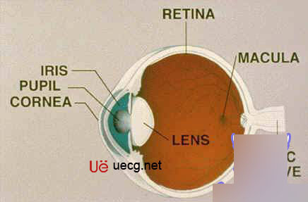 眼球的外形特征:主要分为内膜、中膜、和外膜。内膜为视网膜,是视觉神经生长的地方,为眼球的内部结构。中膜由虹膜(iris)和瞳孔(pupil)构成,虹膜因含色素不同,有黄、绿、蓝不同人种的变化。外膜是由白色不透明的坚韧带巩膜(眼白)和透明的角膜(cornea)构成。