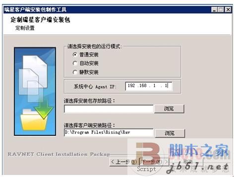 此外,推荐使用通过系统中心制作的与当前中心程序版本一致的客户端安装包进行安装,该安装包可以使用三种安装模式,包括普通安装、自动安装和静默安装,还可以提前指定系统中心IP地址和安装路径,如图3所示。