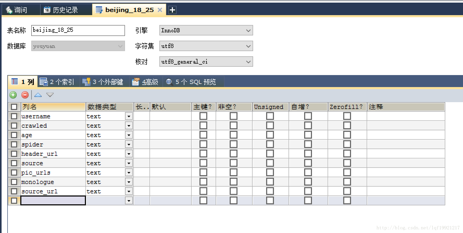 5.创建表beijing_18_25以及所有字段的列名和数据类型。