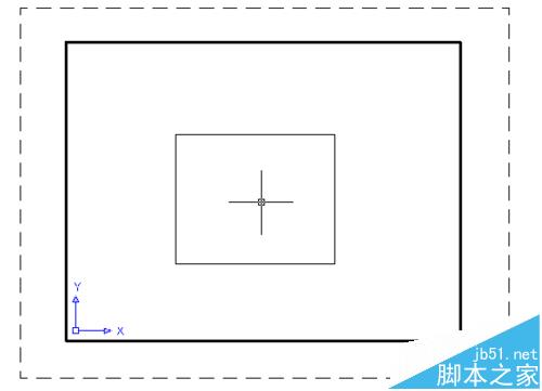 3、将十字指针置于矩形里面(也可置于外面),然后滑动滚轮,发现矩形变大或缩小了,放大到超过粗线框时,超过部分不显示。该粗线框称为【视口】,可通过菜单栏【视图】——【视口】新建,它限制制图的范围,超过部分不显示。另,此时的矩形是可选中并可编辑的。