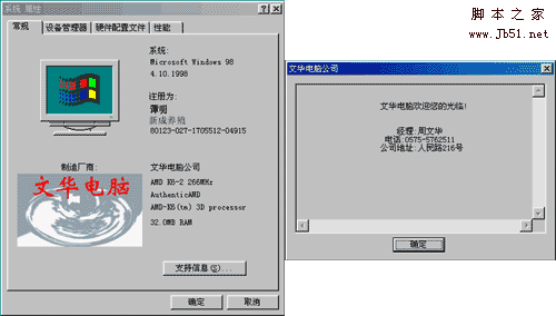 首先安装好WINDOWS95或WINDOWS98系统,并为系统安装附赠的软件,然后编辑OEMINFO.INI文件,其格式如下: