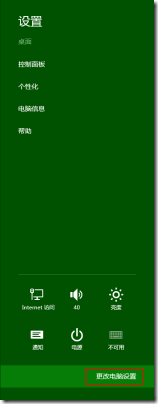 此时要修改 VPN 帐号密码就需要进入 Win8UI 的“电脑设置”,即:鼠标移动到又下角,出现“超级按钮”边栏后点击“设置”。