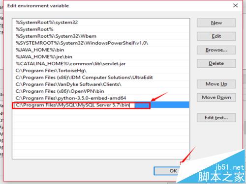 注意事项:path中的路径要到mysql安装目录下的bin目录中;path是增加msyql的安装路径,不要修改其它的路径。