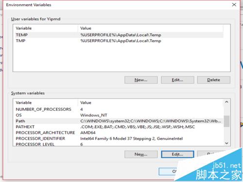 5、在“Environment Variables”窗口中的“System variables”中找到“Path”,并点击“Edit…”进行编辑;