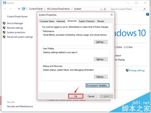 4、在“System Properties”窗口中选择“Environment Variables…”;