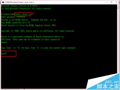 10、在命令行窗口输入:mysql -uroot -p,回车后输入mysql的密码,即可进入mysql中。