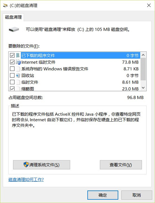 Windows 操作系统的磁盘空间不足时会严重影响磁盘 I/O 性能,所以建议大家对无用的大文件都进行手动清理以保持空闲空间的可用度。对于 Windows 自己所产生的一些文件我们则可以使用磁盘清理工具来完成,该工具是向导式的,用法我就不介绍了。