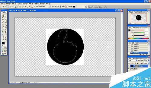 以此类推,得到整只手的轮廓,恢复手图层的透明度,将有色部分改填为白色,删除原图图层。