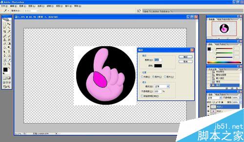 然后是抠“手”,因为有些图片的背景部分颜色很杂,抠图时要用橡皮擦一点一点擦,特别烦,所以本人喜欢用钢笔描图。用钢笔沿着图形边缘点击,一圈下来,栅格化图层,按ctrl键点选手图层,填充任意颜色,描边4个像素左右。