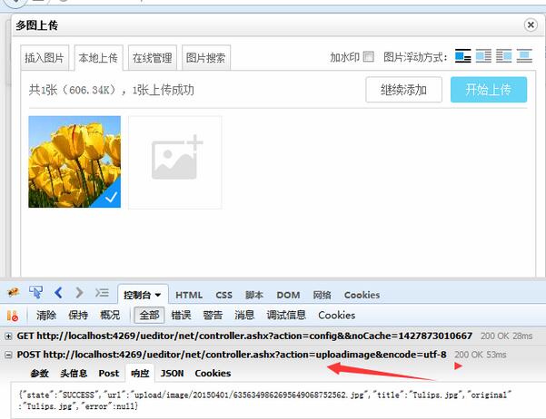 打开FireBug,选中控制台,我们上传一张图片,看一下请求信息: