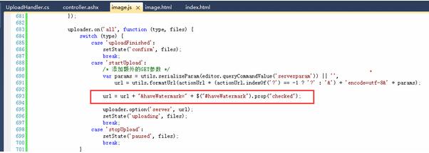 有人很快就反应过来了:我们可以从前台请求controller.ashx 时将带有是否要加水印的"字符串"一并传递到后台,后台通过判断就可以做出相应的处理了!