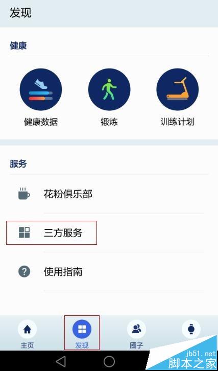 1、打开华为穿戴app,选择发现> 三方服务,选择微信,点击微信接入。
