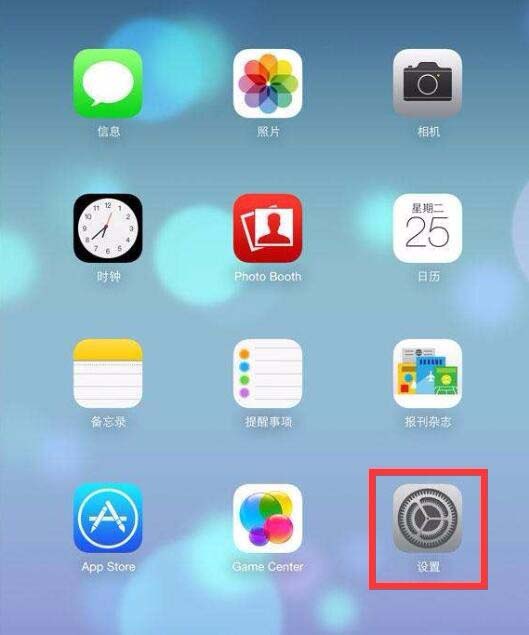 1、首先请在 iPad 的主屏上打开“设置”应用,如图所示。