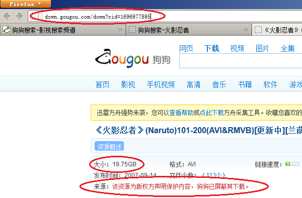点开它,出现如下图的界面,可以看到正常下载地址已被屏蔽。我们复制地址栏中的网址,备用。