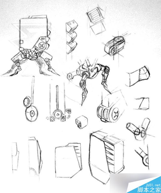 嗯,接下来讲下基本的制作流程,过程比较传统,首先是画在草稿本上的草稿……比较粗糙,不过能够很好的构思各部分结构与基本比例,原则上是画的越丰富做起来也就越容易,这次只算是个人练习而已,画给自己看,草稿就点到为止,画多了也只能YY。