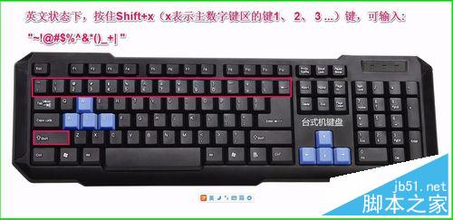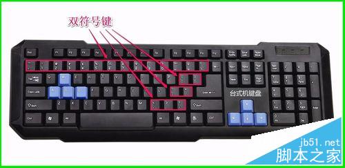 13、一般来说,键盘上的单号键和双符号键的下面那个符号,输入时都不需要按Shift键,双符号键上面的那个符号输入时,都需要按Shift键(下图红框所指的是双符号键)。