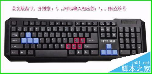9、英文状态下分别按键盘上的;‘, . /键,输入 ; ' , . / 标点符号;这里不同的是" 。"和 " . " 及“、”和“/”。