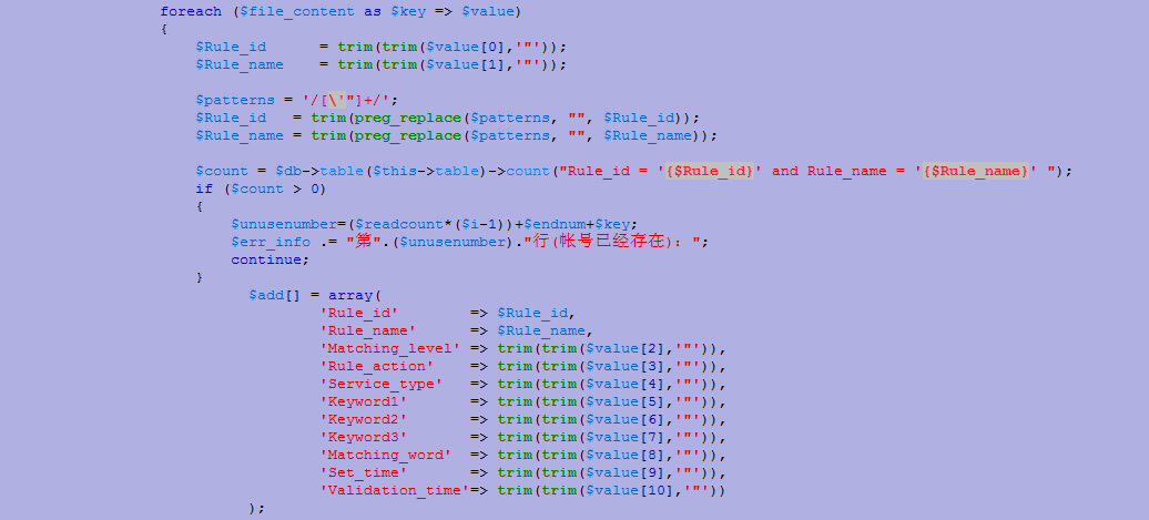 这种办法行不通了,对一个5m的文件只能分行读取了。然后就是对代码的一通修改,分行读取是这样操作的,先ajax请求,然后每次读取2000条 然后对这2000条数据进行处理,插入数据库(文章最后介绍一个好用的分行读取函数)。然后每次ajax执行完,返回一个状态符,和本次读取到的行数,然后下次接着读。知道最后读取完。这中间还遇到一个问题:就是当我对每一行数据进行查重的时候遇到的,是这样的,我对得到的内容进行循环,然后查一下每行是否存在,当我判断$count是否大于0 的时候,当已存在的时候,我用continue,执行下一次循环。但是当我在导入10000条的时候,总是在8000条的时候报错说 服务器内部错误。很闷,不解问什么,结果只能用if else代替了。纳闷。一个小提醒:插入数据库的时候 不要一条一条的插入,最好这样 inset into aaa(`xx`,`xxx`)values('111','111'),('222','222')。这样 速度会快很多。