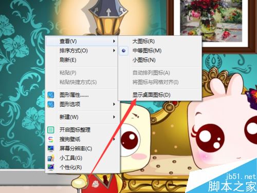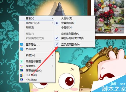 同样的,假如我们要显示桌面图标的话,点击显示桌面图标的话就可以啦