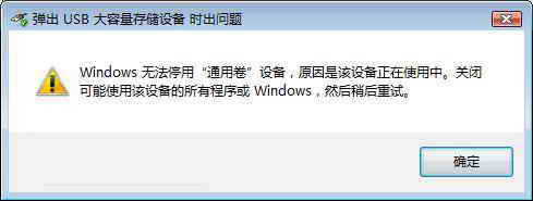VISTA系统,用USB移动储存设备时,在单点击系统任务栏中的安全删除硬件图标不能移除U盘,出现了错误信息:弹出USB大容量存储设备时出问题,并且无法删除它,怎么办?