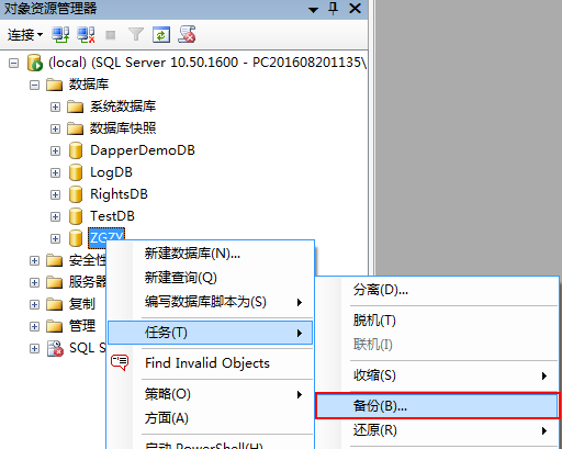 数据库对象右键\任务\备份