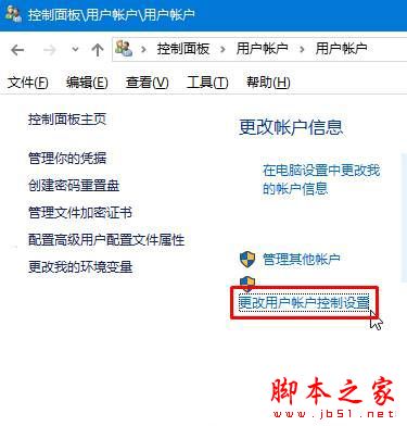 4、点击“更改用户账户控制设置”,在弹出的提示窗口中点击“是”;