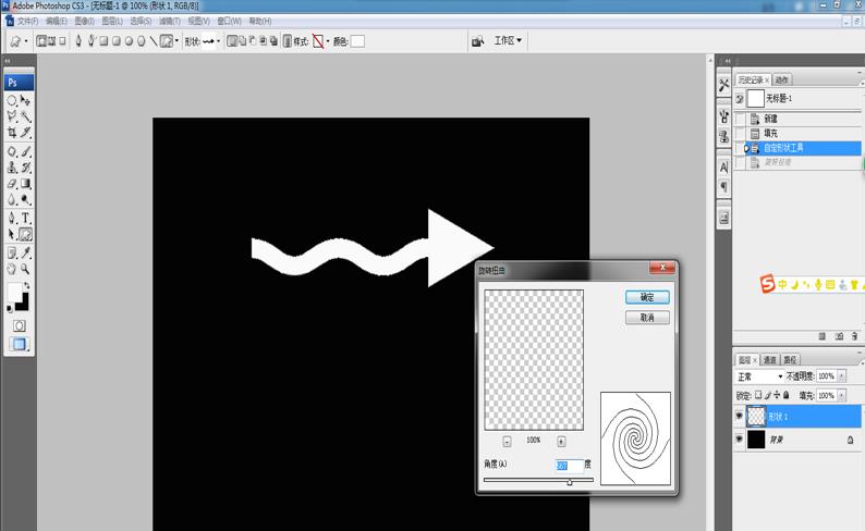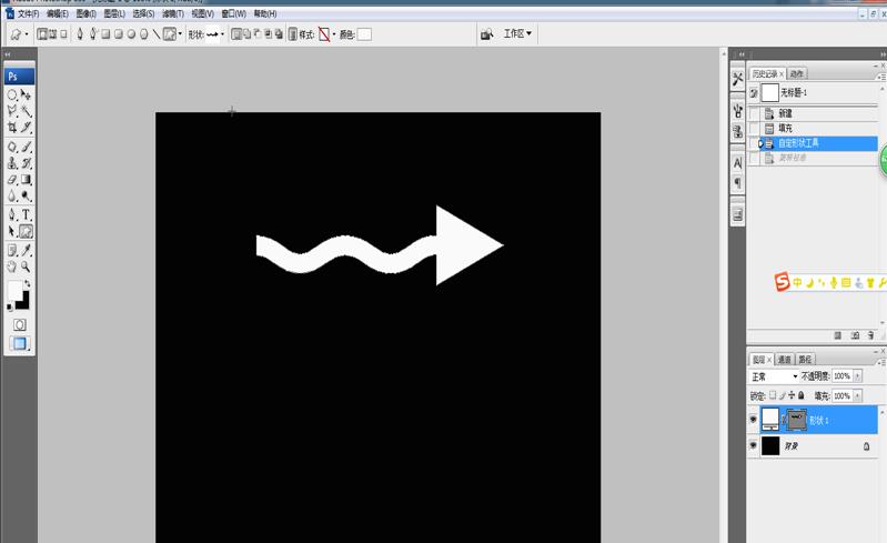 3、在左侧的菜单栏中选择“编辑自定义图形”,然后在图形中选择“蝌蚪图案”,并前景色设置为白色,在黑色画布上绘制一个蝌蚪图案,如下图所示。