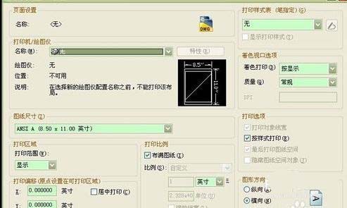 5、选择一个布局,点击修改,弹出平时的打印对话框,设置打印机、纸张大小和打印样式,设置好后,此时不用选择图纸直接确定
