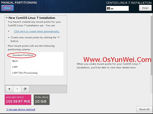 新挂载点使用以下分区方案:标准Standard Partition