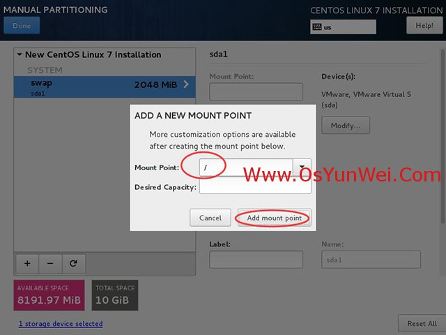 添加挂载点,如下图所示