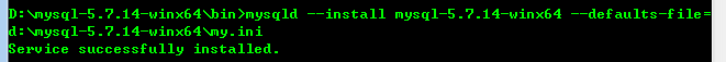 bin\mysqld –install mysql-5.7.14-winx64 –defaults-file=d:\mysql-5.7.14-winx64\my.ini