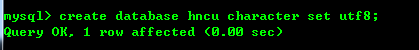 //创建一个数据库hncu,并设置编码为utf-8.这样设置编码的好处就是不用依赖配置文件里面的默认编码。