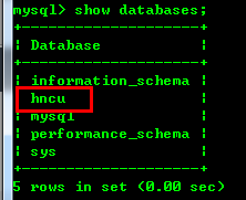 use hncu; //打开“hncu”这个数据库 show tables; //显示当前数据库的所有表名