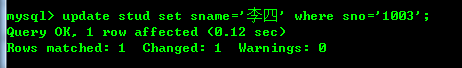 insert into stud values(‘1004','张三',30); //向stud 表插入一条记录