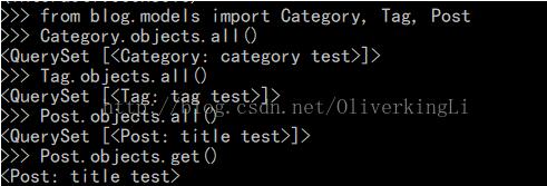 定义好 __str__ 方法后,解释器显示的内容将会是 __str__ 方法返回的内容。这里 Category 返回分类名 name ,Tag 返回标签名,而 Post 返回它的 title。